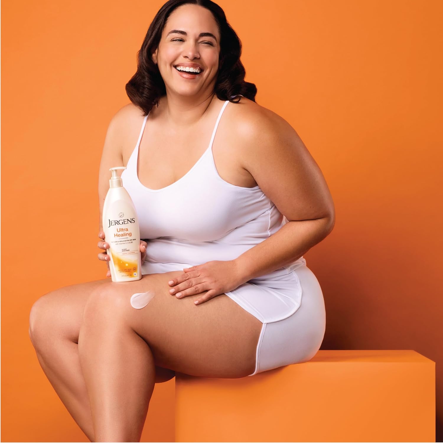Repairs, heals, and deeply nourishes extra dry skin to reveal visibly luminous, healthier skin.Best for: Extra dry skin, including heels, elbows, and knees.Improves skin‘s tone, texture, and luminosity.Contains a unique illuminating HYDRALUCENCE™ blend and Vitamins C, E, and B5.Heals dryness at the source by penetrating through 5 layers of the skin‘s surface.Absorbs quickly and locks in moisture for up to 48 hours.Use JERGENS® Ultra Healing® Extra Dry Skin Moisturizer during the day, and JERGENS® Overnight Repair Nightly Restoring Moisturizer at night for 3x smoother, softer skin.